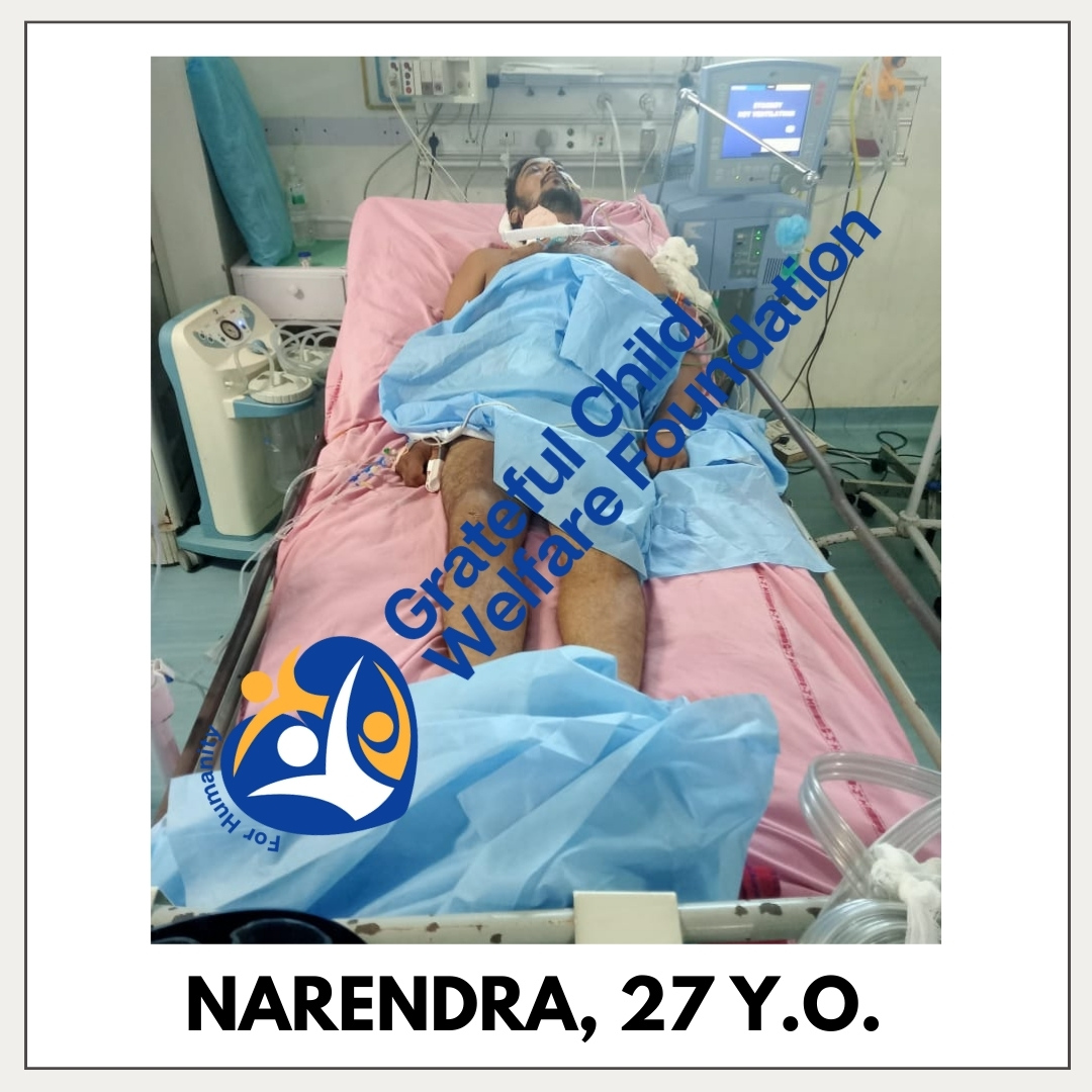 Narendra is a Truck Driver. During his duty hours, while he was driving on KMP Expressway from Manesar towards Palwal, his truck collided into another truck. It was a major accident. He was immediately taken to Civil Hospital, Palwal by the people available at the accident site. This accident took place on 6th of October in the morning. He was referred to Safdarjug Hospital, New Delhi. He is admitted in HDU ward of Safdarjung Hospital where his condition is extremely critical. He has two children, one is 2.5 years old and one is just 4 months old. Narendra needs your help to overcome this critical situation and be able to live as he was living a few days back. Currently he is in coma.