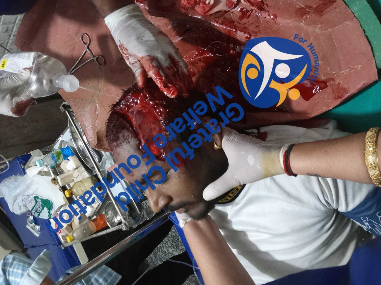Akash while traveling from Sikandarabad UP to Noida UP with his wife and daughter met a road accident, people near to the accident location helped them and got them to the hospital named Sona Hospital. There he was provided emergency treatment and observed 65 stitches. His Wife and Daughter got minor injuries. Akash is shifted to MMG Hospital for further treatment.