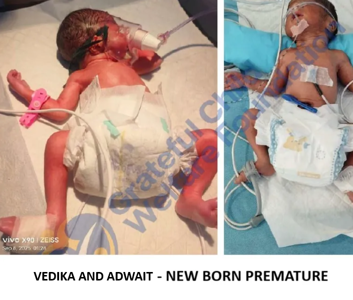 Vedika Singh and Adwait Singh, who were born prematurely. Due to their fragile condition, doctors have advised that both babies must remain in the NICU (Neonatal Intensive Care Unit) for at least 1.5 months. The cost of NICU care is ₹20,000 per day (₹10,000/per day, per child) and the family is unable to bear this overwhelming financial burden.